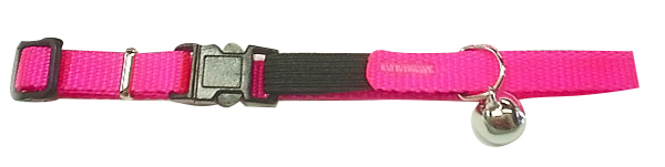 Nylon cat collar in a brightly coloured pink. Elastic for safety. Size 10mm wide and extends approximately 20-30cm.