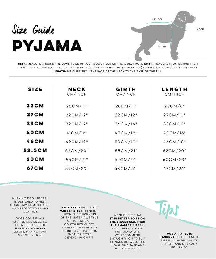 Huskimo Dog Coat Sizing: