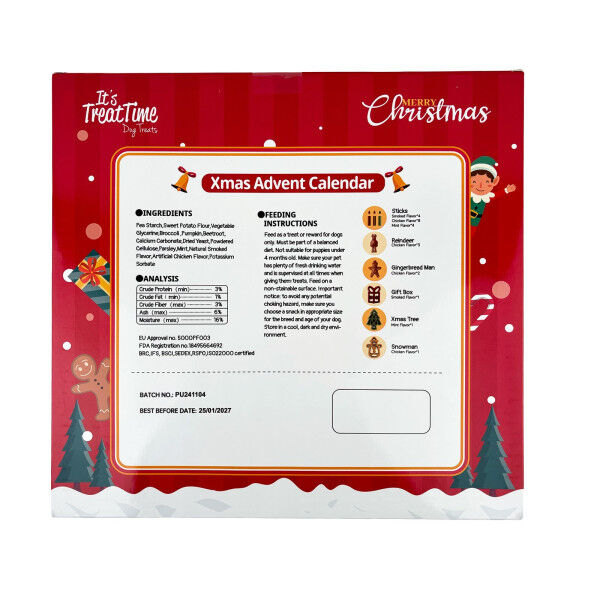 Make your pup’s holiday season extra special with the It’s Treat Time Xmas Advent Calendar for Dogs! Packed with 24 delicious treats behind festive numbered doors, this calendar is the paw-fect way to count down to Christmas together.