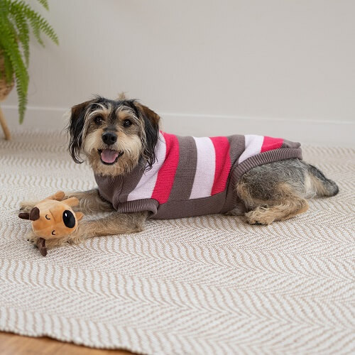 Talk about treasure chest. This jumper is packed full of features that make it worth its weight in gold. Fur starters, there’s the stretchy wide chested fit designed to fit snugly on any size and shape. And then there’s the eye-catching stripes. Cosy pawfection!