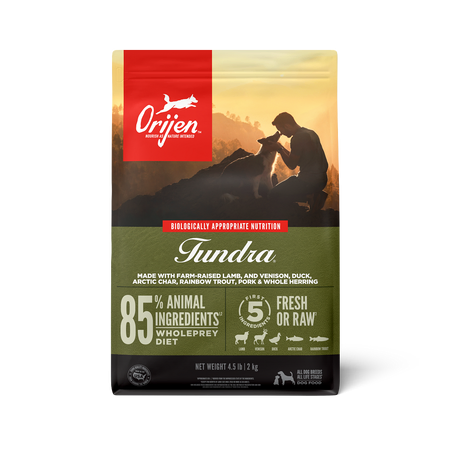 ORIJEN Tundra Dog Food is formulated to meet the nutritional levels established by the AAFCO Dog Food Nutrient Profiles for All Life Stages, except for growth of large size dogs (70 lb. or more as an adult).