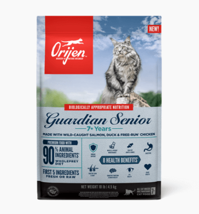 ORIJEN™ GUARDIAN SENIOR CAT FOOD is formulated to meet the nutritional levels established by the AAFCO Cat Food Nutrient Profiles for Adult Maintenance