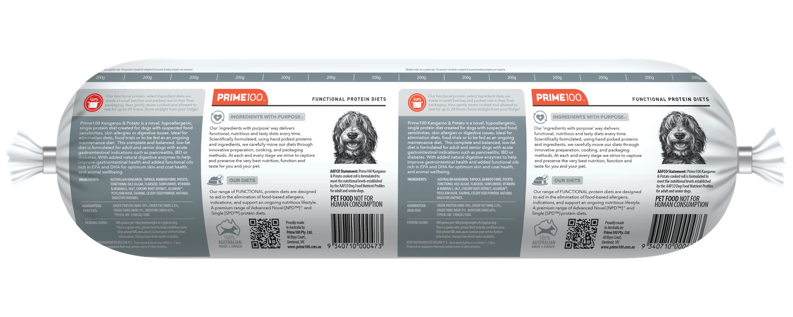 Prime100 SPD Kangaroo & Potato Fresh Dog Food Roll 2kg