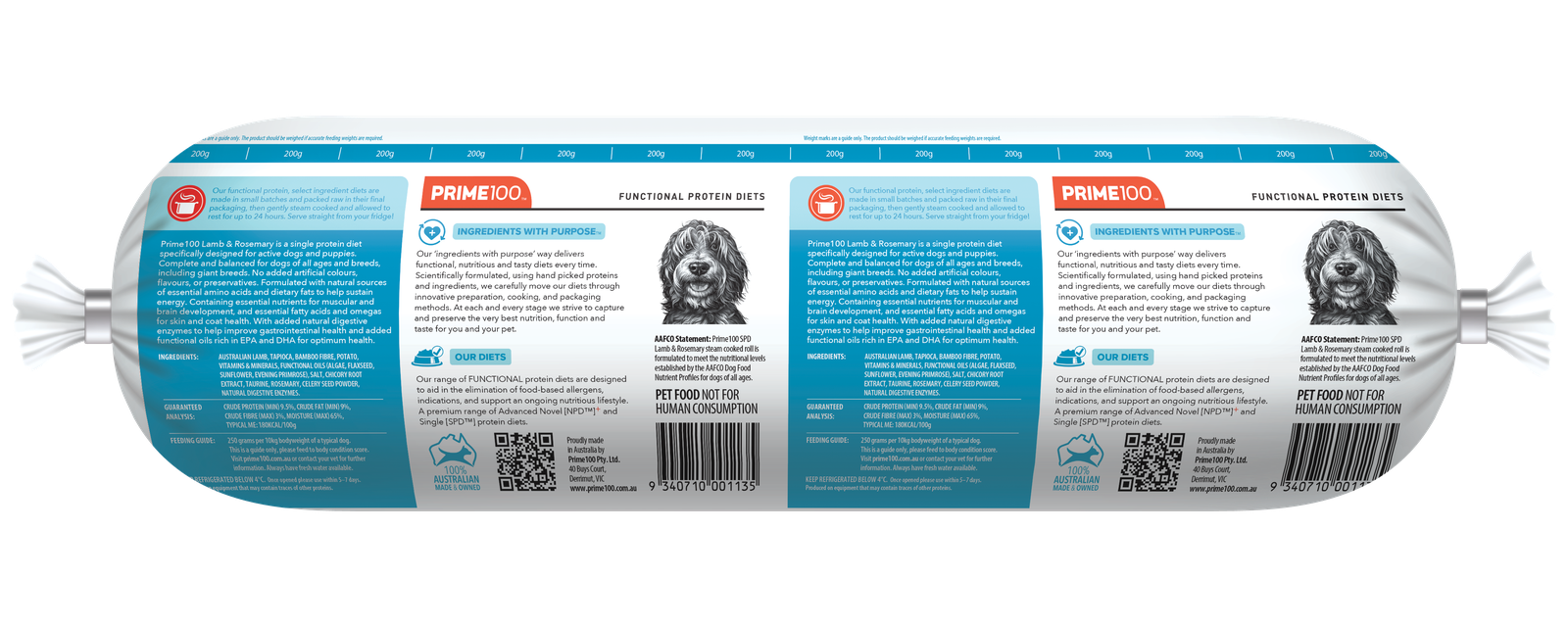 Prime100 SPD Lamb & Rosemary Fresh Dog Food Roll 2kg