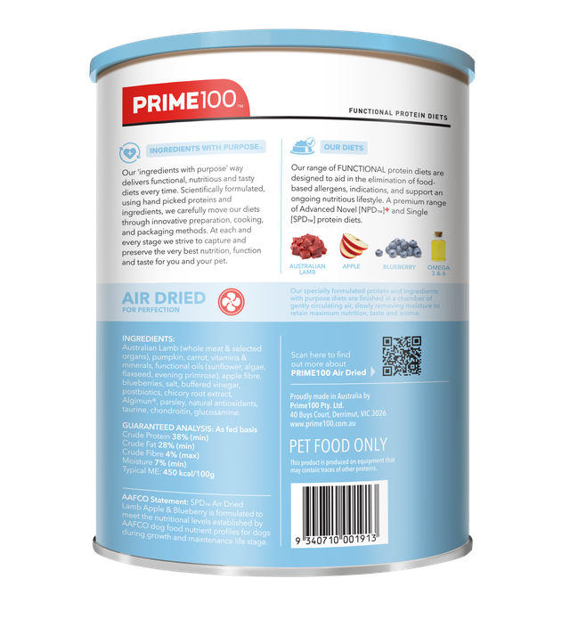 Prime100 SPD Air Dried Puppy Food Lamb, Apple & Blueberry 600g