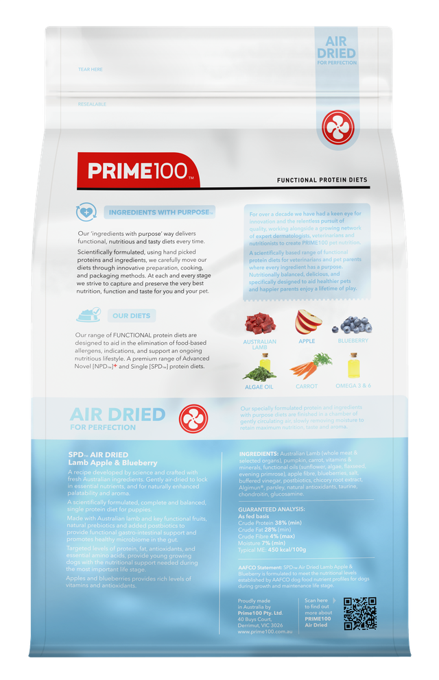 Prime100 SPD Air Dried Puppy Food Lamb, Apple & Blueberry 2.2kg