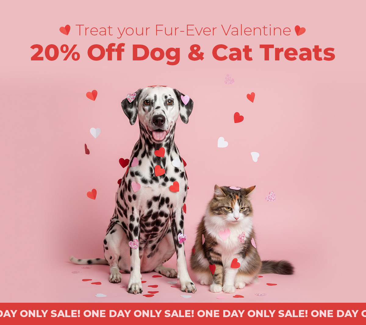 For one day only on Saturday 14th February, enjoy 20% off all dog and cat treats, available in-store and online. It’s the perfect excuse to spoil your fur-ever Valentine with something delicious they’ll adore.